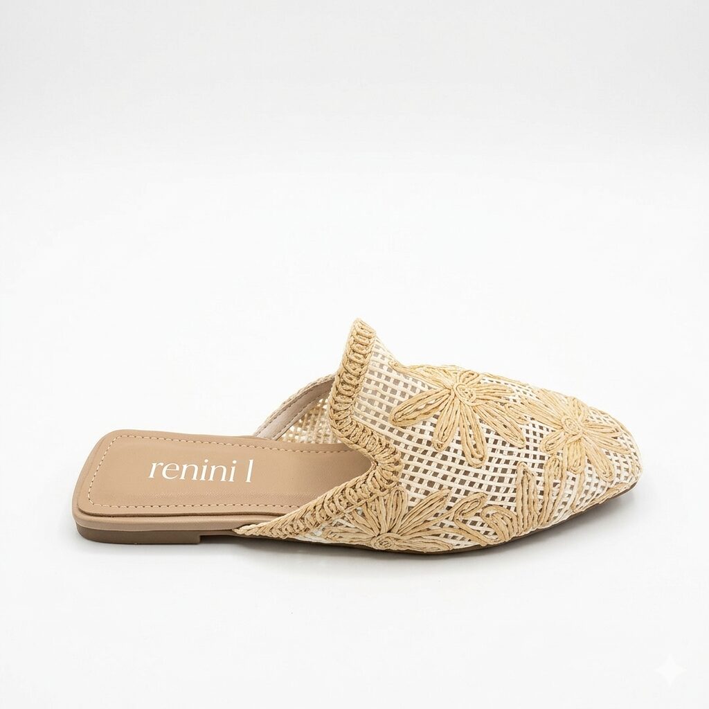 Pleteni natikači, z vzorcem rož v belo-bež barvi.