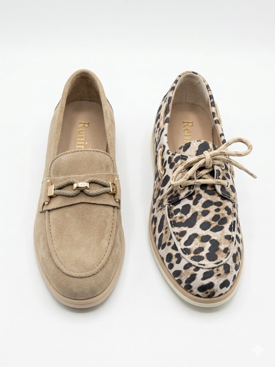 Dodajte svojemu videzu kanček drznosti in elegance z usnjenimi čevlji znamke Renini. Ti modni čevlji združujejo udobje, kakovostno izdelavo in sodoben stil, zato so popolna izbira za vsakodnevno nošenje ali sproščene priložnosti.